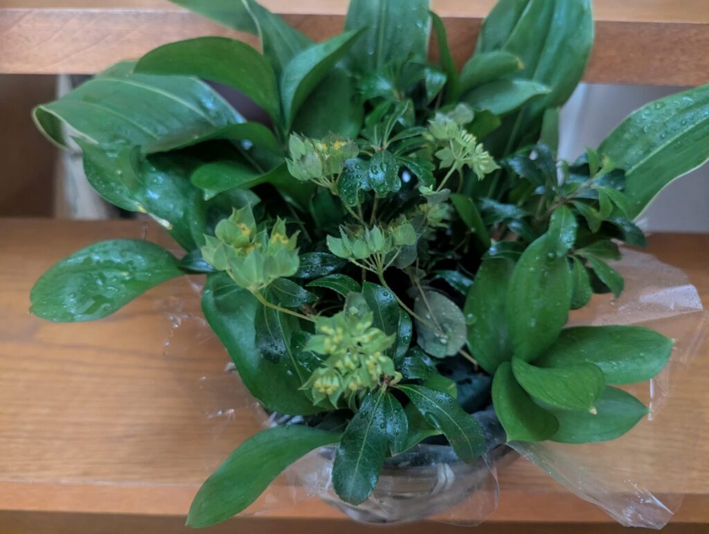 左側の黄色いお花と、上のアレンジメントのカーネーションが最後まで、頑張ってました✨