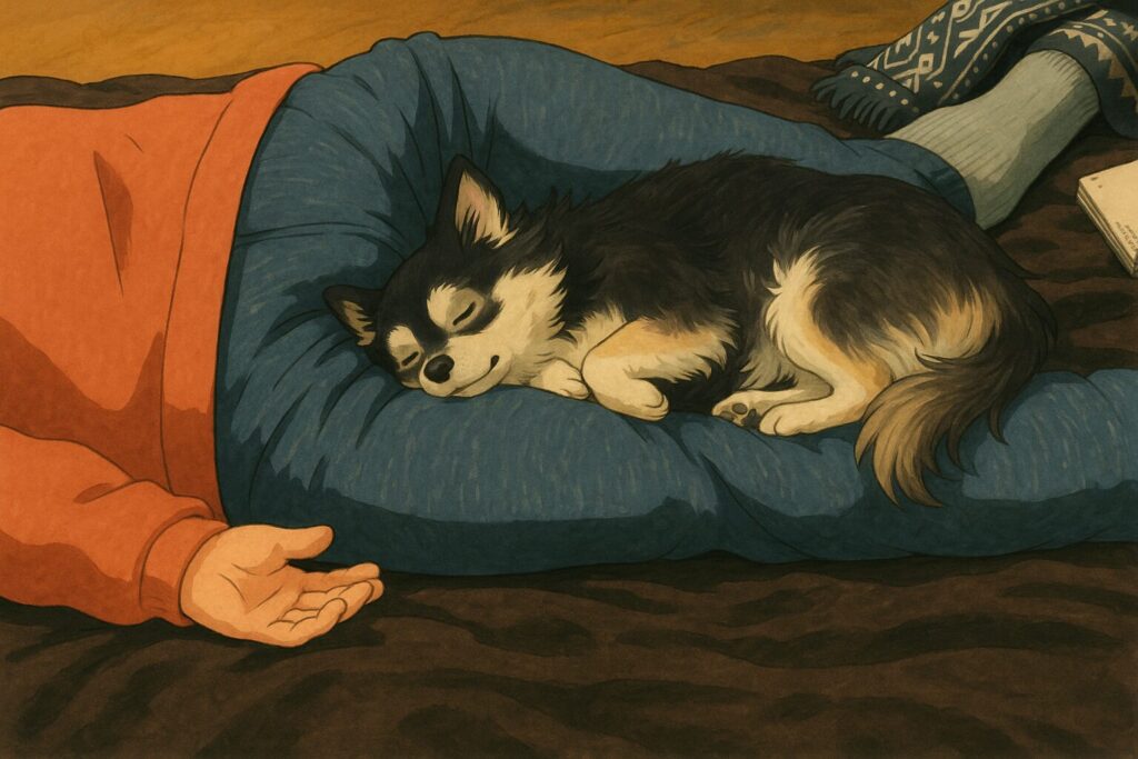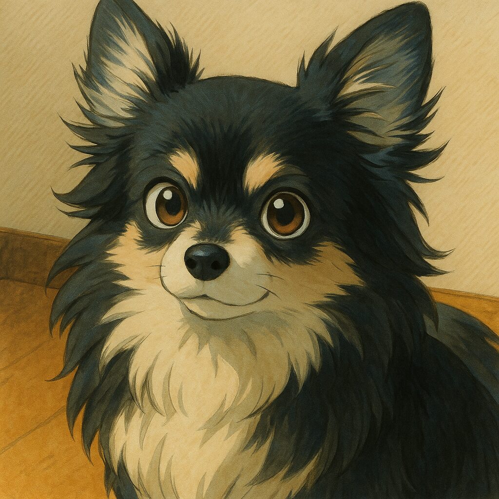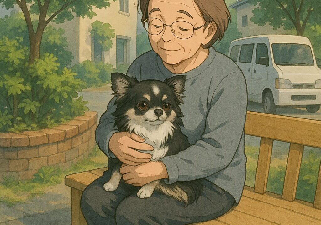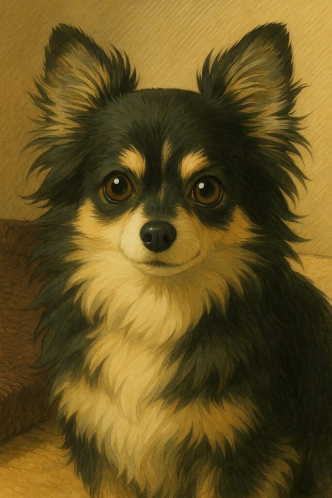 夫の母が愛犬いろはを、可愛がってくれている写真をチャッピーに加工してもらいました。