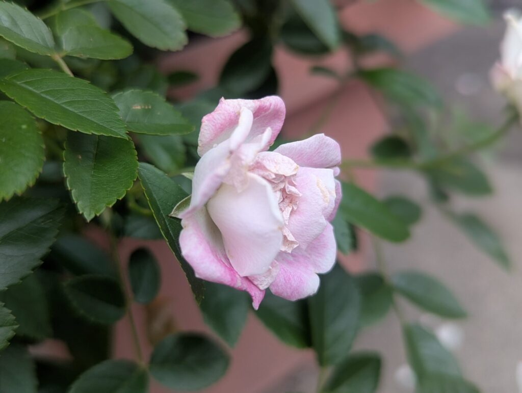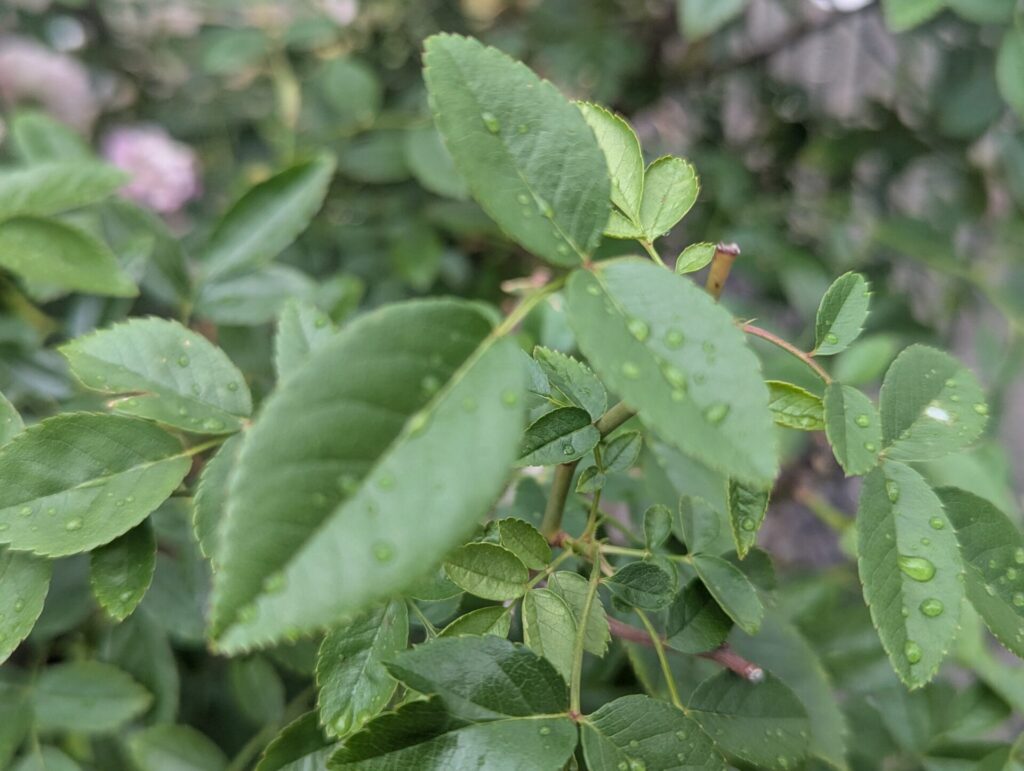 雨が降る前に「いろは」と散歩していると、たまにお花を下さる方が育てている薔薇。