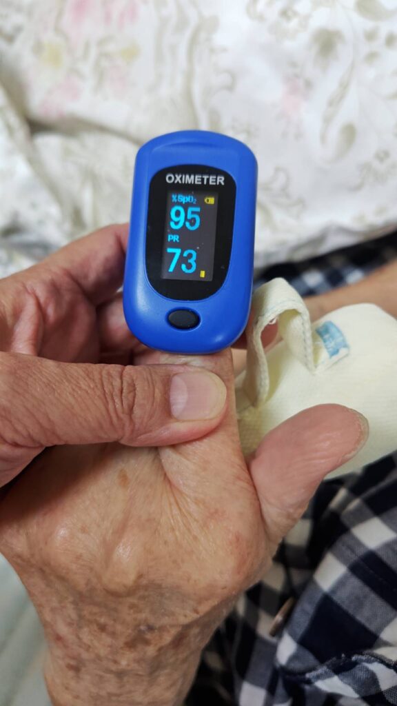 施設から「高熱が出ています。39,1℃ spo2は82%です。かなりしんどそうです。」と、電話がありました。