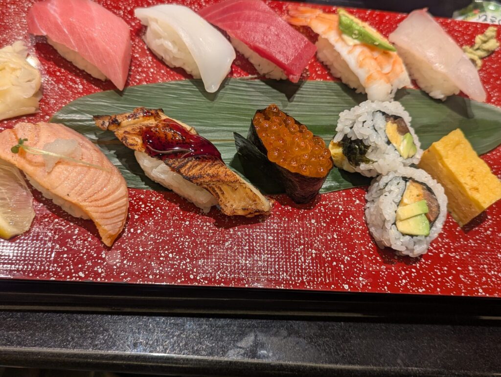 夕食はちょっと良い廻転寿司の「長次郎」。