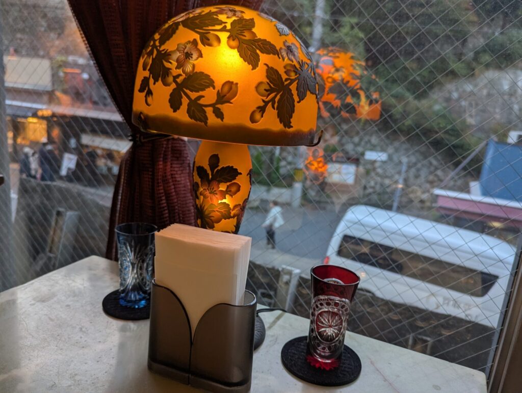 細い坂道を登り、食べて帰りのバスまでの時間は、コーヒーでも飲んで、ゆっくり過ごしたくて、友人が見つけたのが「純喫茶 小川」さん。ちょっと変わった雰囲気の喫茶店。