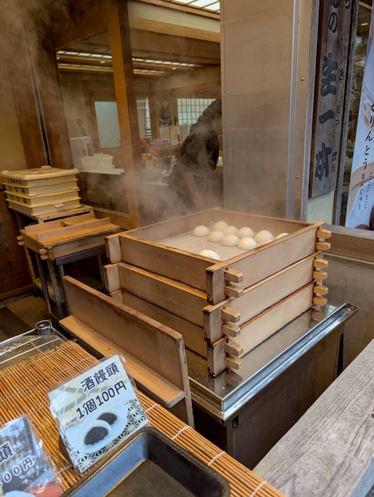 上の写真はアツアツで、1個100円の酒饅頭最高でした‼️
