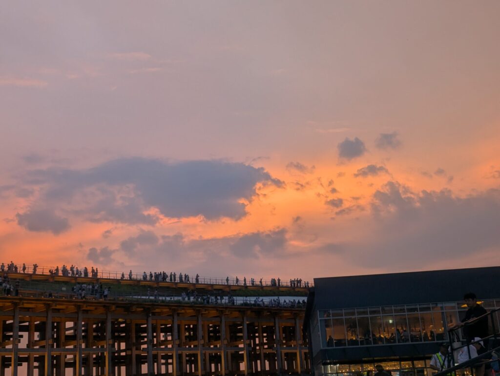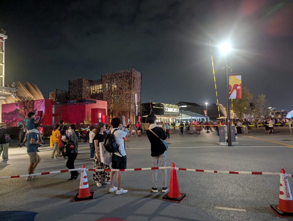 ドローンショーは、21時頃から始まります。これが終わると一斉に、夢洲駅に向かう人で東ゲートから駅までが、凄く混み合います。