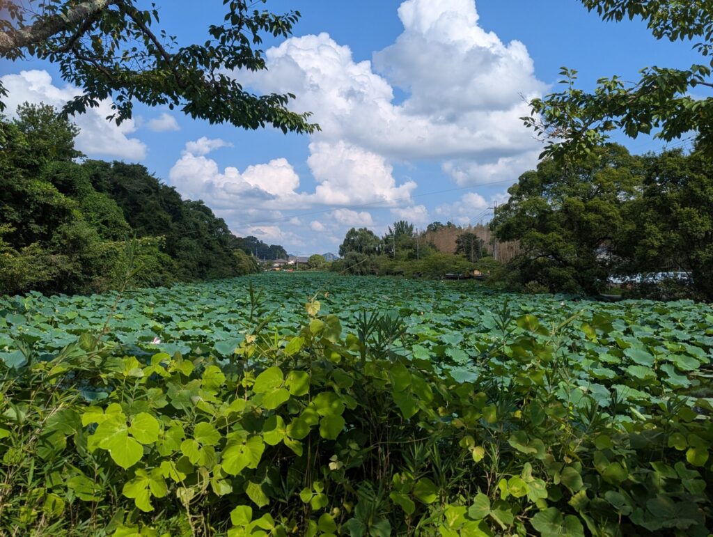 お堀らしき近くに、ハス池がありぐるっと回ります。